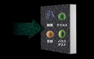 光触媒とは、光が当たることでウイルスや菌などを除去してくれる環境浄化素材のことです。