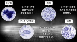 フィルター上で菌やウイルスは生きた状態のまま留まってしまう可能性があります。