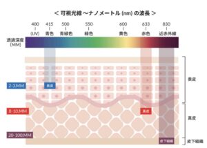 LEDの波長(色)によって、肌深部の届く層が違いうので効果が異なります!