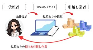 依頼者が条件などを提示すると、その条件に適した引越し業者に見積もり依頼してくれます。