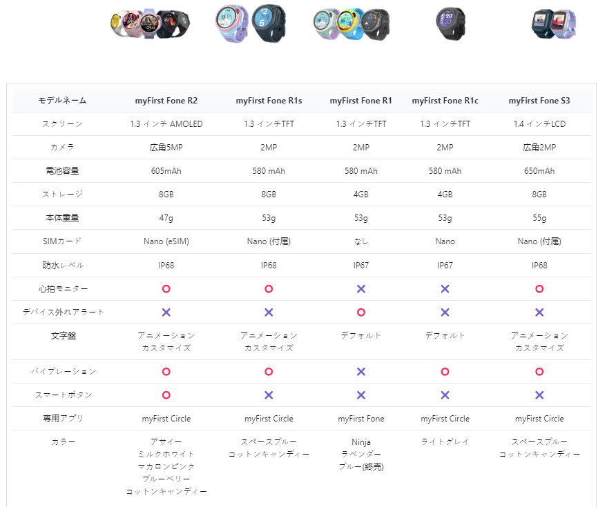 | 機能 | myFirst Fone R1s | A社モデル | B社モデル |