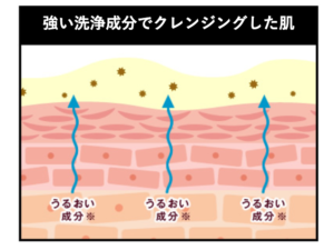 洗顔後につっぱる 洗浄力が強すぎる 潤いを奪い取り、敏感肌化を招く
