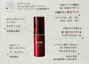 ナールスネオの最大の特徴は、エイジングケアに必要な特徴的な成分を同時配合したことです。
