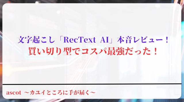 RecText AIの圧倒的なコストパフォーマンスは、改めて強調したいポイント!