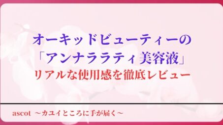 今話題の胡蝶蘭エキスの美容液とは?オーキッドビューティーの「アンナララティ美容液」を2ヶ月使用!実際に利用した本音をレビュー。さらに、胡蝶蘭エキスの保湿力と敏感肌への優しさを徹底検証。デメリットも包み隠さず公開、初回セット情報付きで解説!